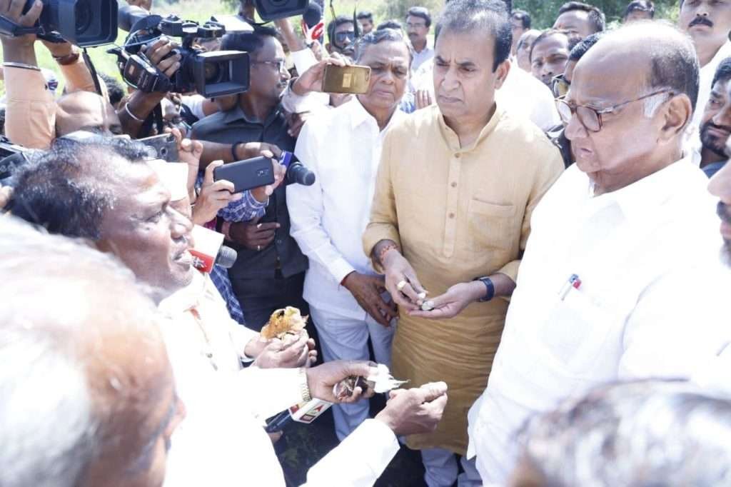 माजी मुख्यमंत्र्यांच्या दत्तक गावातील शेतकऱ्यांची पवारांनी जाणून घेतली व्यथा