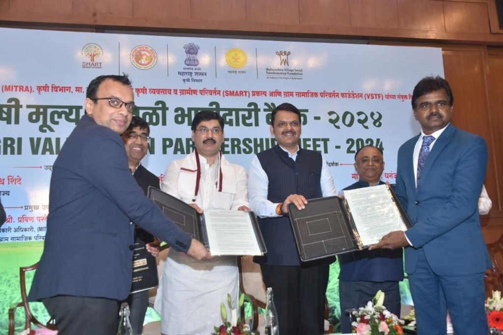 कृषी विभाग, महाराष्ट्र इन्स्टिट्यूट फॉर ट्रान्सफॉर्मेशन (MITRA ), बाळासाहेब ठाकरे कृषी व्यवसाय व ग्रामीण परिवर्तन (SMART) प्रकल्प आणि ग्राम सामाजिक परिवर्तन फाऊंडेशन (VSTF) यांच्या संयुक्त विद्यमाने आयोजित कृषी मूल्य साखळी भागीदारी बैठक -2024 सह्याद्री अतिथीगृह येथे आयोजित केली होती.त्यावेळी ते बोलत होते.यावेळी कृषी मंत्री धनंजय मुंडे, कृषी विभागाचे अपर मुख्य सचिव अनूप कुमार, महाराष्ट्र इन्स्टिट्यूट फॉर ट्रान्सफॉर्मेशन (MITRA ) चे मुख्य कार्यकारी अधिकारी प्रविण परदेशी, ग्राम विकास विभागाचे प्रधान सचिव एकनाथ डवले, कृषी आयुक्त प्रवीण गेडाम यांच्यासह विविध आंतरराष्ट्रीय व राष्ट्रीय पातळीवरील कंपन्यांचे प्रतिनिधी आणि शेतकरी उत्पादक कंपन्यांचे प्रतिनिधी आदी उपस्थित होते.