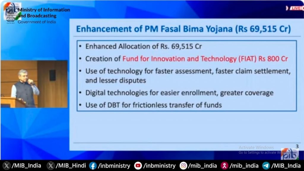 माहिती आणि प्रसारण मंत्री अश्विनी वैष्णव यांनी पत्रकारांना सांगितले की, “योजनांना शेतकऱ्यांकडून सकारात्मक प्रतिसाद मिळाला आहे आणि त्यामुळे पीएमएफबीवाय PMFBY आणि आरडब्लूबीसीआयएस RWBCIS साठी वाटप वाढवण्यात आले आहे.”