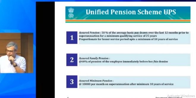 केंद्राने शनिवारी युनिफाइड पेन्शन स्कीम (UPS) नावाची नवीन पेन्शन योजना जाहीर केली असून या योजनेमुळे सरकारी कर्मचाऱ्यांना खात्रीशीर पेन्शन, कौटुंबिक निवृत्ती वेतन आणि खात्रीशीर किमान पेन्शन मिळणार आहे. ही नवीन पेन्शन योजना १ एप्रिल २०२५ पासून लागू होणार असल्याची माहिती रेल्वेमंत्री अश्विनी वैष्णव यांनी पत्रकार परिषदेत दिली.