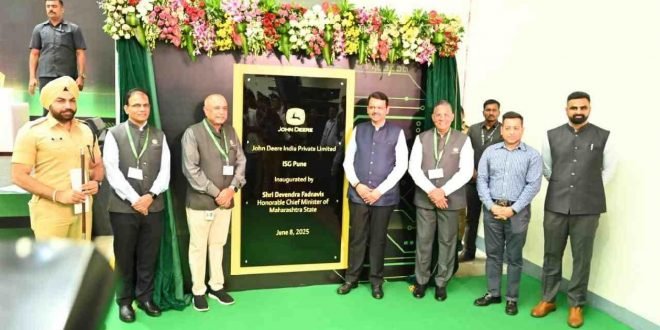 मुख्यमंत्री फडणवीस यांच्या हस्ते जॉन डिअर इंटेलिजेंट सोल्युशन्सच्या सणसवाडी प्रकल्पाचे उद्घाटन ‘जॉन डिअर’ने तंत्रज्ञान आधारित स्मार्ट मशिन्स महाराष्ट्रात तयार करून त्या जगात निर्यात कराव्या