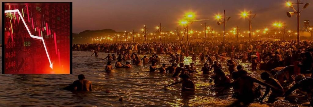 गेल्या काही दिवसांपासून शेअर बाजार घसरत आहे त्याची अनेक कारणे म्हणजे मंदावलेली देशांतर्गत अर्थव्यवस्था, कमकुवत उत्पन्न, विक्रमी घसरण, चीन-अमेरिका टॅरिफ वॉर आणि परकीय गुंतवणूक ही आहेत. परंतु इतिहास पाहिला तर, आता बाजारावर आणखी एक घटक परिणाम करत आहे: कुंभमेळा!