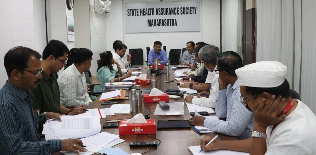 राज्य आरोग्य हमी सोसायटीच्या वरळी, मुंबई येथील मुख्यालयात आयुष्मान भारत प्रधानमंत्री जन आरोग्य योजना आणि महात्मा जोतिराव फुले जन आरोग्य योजनांच्या कामकाजाचा आढावा मंत्री प्रकाश आबिटकर यांनी घेतला. यावेळी आयुष्मान भारत मिशन महाराष्ट्र समितीचे अध्यक्ष डॉ. ओमप्रकाश शेटे, राज्य आरोग्य हमी सोसायटीचे मुख्य कार्यकारी अधिकारी अण्णासाहेब चव्हाण, उपमुख्य कार्यकारी अधिकारी डॉ. दयानंद जगताप, सार्वजनिक आरोग्य विभागाचे सहसचिव अशोक आत्राम, सहायक संचालक डॉ.रवींद्र शेटे आदि उपस्थित होते.