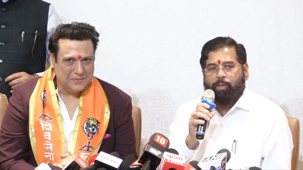 उत्तर मुंबई लोकसभा मतदारसंघातून राम नाईक यांचा पराभव करून काँग्रेसचा खासदार म्हणून निवडून आलेले चित्रपट अभिनेता गोविदा आहुजा यांनी १४ वर्षांच्या राजकीय वनवासानंतर शिवसेना शिंदे गटात प्रवेश केला. गोविंदा यांना पुन्हा लोकसभेच्या मैदानात उतरवले जाईल की त्यांना स्टार प्रचारक म्हणून जबाबदारी केली जाईल याबाबत राजकीय वर्तुळात उत्सुकता निर्माण झाली आहे.