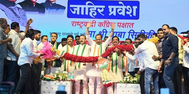 काँग्रेसचे ज्येष्ठ नेते व माजी मंत्री बाबा सिद्दीकी यांनी आज राष्ट्रवादी काँग्रेसमध्ये जाहीर प्रवेश केला. बाबा सिद्दीकी यांचे उपमुख्यमंत्री अजित पवार यांनी राष्ट्रवादी काँग्रेसमध्ये स्वागत केले.