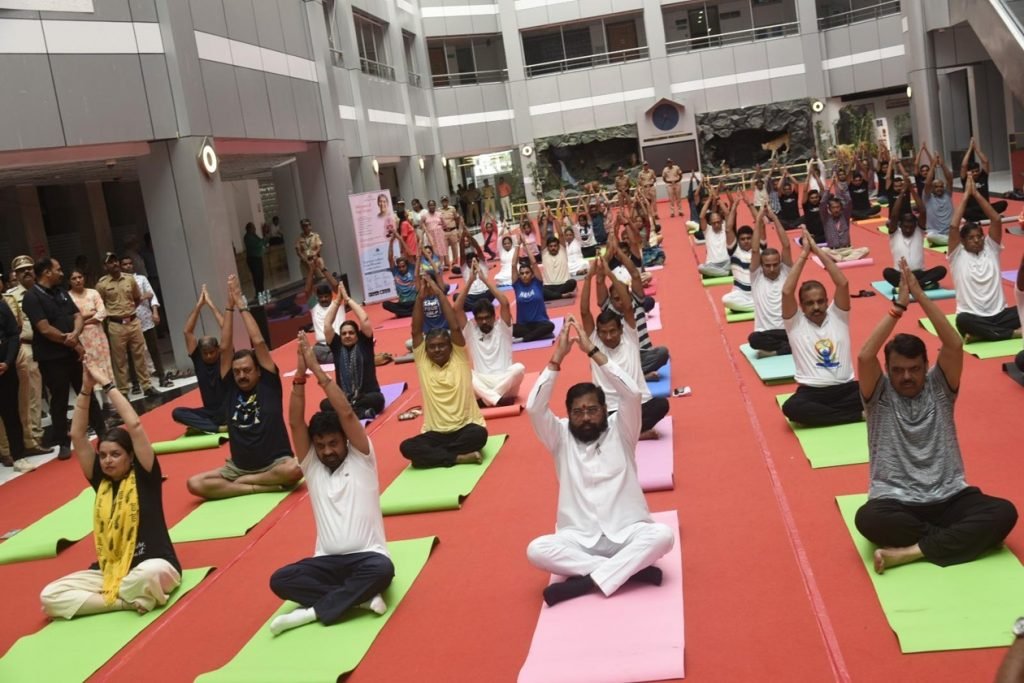 मुख्यमंत्री शिंदे म्हणाले की, आज सर्व जगभर योगदिन साजरा करण्यात येत आहे. पंतप्रधान नरेंद्र मोदी यांनी योगाचे महत्व ओळखून संपूर्ण जगभर योगाला ओळख निर्माण करून दिली. तर योगगुरू रामदेव बाबा यांनी योग जगभर पोहोचविण्याचे काम केले. योगवर आपली प्राचीन संस्कृती आधारित असून त्यांनी योगाला घराघरात पोहोचविले. उत्तम आरोग्याचा नवा मंत्र योग आणि आयुर्वेद जडी-बुटी आहे. पंतप्रधान श्री. मोदी कधीच योग विसरत नाहीत, म्हणून ते तंदुरूस्त आहेत. भारताला पुढे नेण्यात ते अग्रेसर असून महाराष्ट्र त्यांच्या विकास कामाला नेहमी साथ देत राहणार असल्याची ग्वाही त्यांनी दिली.