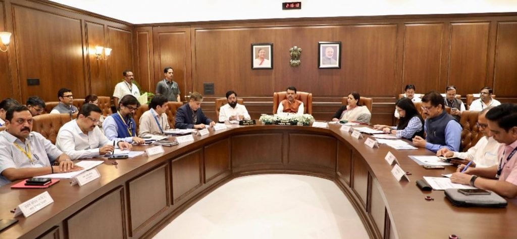विधानभवनात झालेल्या बृहन्मुंबई महानगरपालिकेच्यावतीने राबविण्यात येणाऱ्या विविध प्रकल्पांच्या आढावा बैठकीत उपमुख्यमंत्री एकनाथ शिंदे, नगरविकास राज्यमंत्री माधुरी मिसाळ, बृहन्मुंबई महानगरपालिकेचे आयुक्त भूषण गगराणी, नगरविकास विभागाचे अपर मुख्य सचिव असीम गुप्ता, महसूल विभागाचे अपर मुख्य सचिव राजेश कुमार, वन विभागाचे अपर मुख्य सचिव मिलिंद म्हैसकर, महापालिकेचे अतिरिक्त आयुक्त अभिजित बांगर आदी उपस्थित होते.