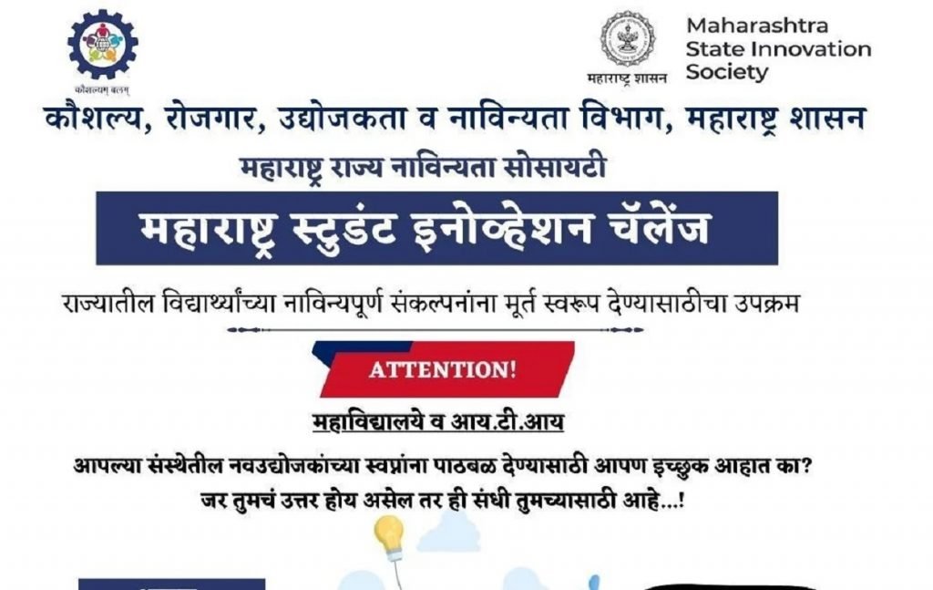 कौशल्य, रोजगार, उद्योजकता व नाविन्यता विभागांतर्गत ‘महाराष्ट्र स्टुडंट इनोव्हेशन चॅलेंज’ मोहीम ३० सप्टेंबर २०२३ पर्यंत राबविण्यात येणार आहे, असे मुंबई शहर जिल्हा कौशल्य विकास, रोजगार व उद्योजकता मार्गदर्शन केंद्राचे सहायक आयुक्त रवींद्र सुरवसे यांनी प्रसिद्धीस दिलेल्या पत्रकान्वये कळविले आहे.