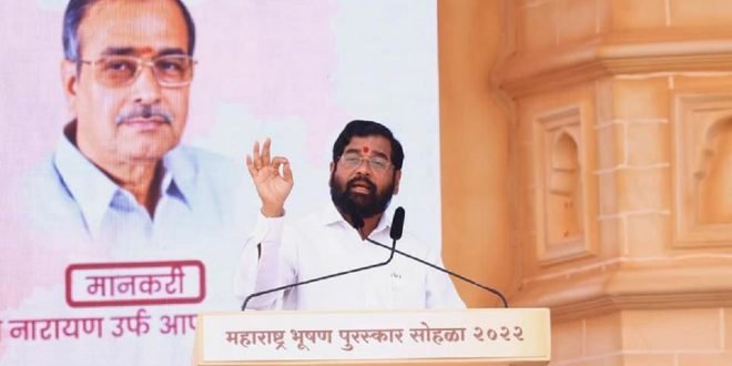 राजकीय सत्तेपेक्षा अध्यात्मिक शक्ती मोठी असते त्याचे स्वरूप या ठिकाणी आपण पाहतोय. राजकीय अध्यात्मिक अधिष्ठानाची जोड, आशीर्वाद आणि प्रेरणा या ठिकाणी लागते त्याचा जिवंत उदाहरण या ठिकाणी आपण पाहतो आहे, असे मुख्यमंत्री यावेळी म्हणाले. ही गर्दी सगळे रेकॉर्ड मोडणारी असून याचे रेकॉर्ड मोडायचा असेल तर ते फक्त आणि फक्त आप्पा साहेबांचे श्री सदस्यच मोडू शकतात, असेही मुख्यमंत्र्यांनी यावेळी सांगितले. या अथांग जनसागरामध्ये आप्पासाहेबांच्या रूपाने देव दिसतोय. नानासाहेबांना देखील महाराष्ट्र भूषण पुरस्कार जाहीर झाला होता पण त्यांच्या निधनानंतर याच मैदानामध्ये आप्पासाहेबांनी स्वीकारला होता आणि त्याच मैदानामध्ये आज पुन्हा २०२२ चा महाराष्ट्र भूषण आप्पासाहेबांना देण्यात आला हा योगायोग आहे.