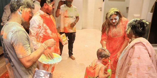 नातवाच्या आणि कुटुंबियांच्या उपस्थितीत एकनाथ शिंदे यांनी धुळवडीचा लुटला आनंद सर्वसामान्यांच्या जीवनात विकासरूपी सप्तरंगांची उधळण