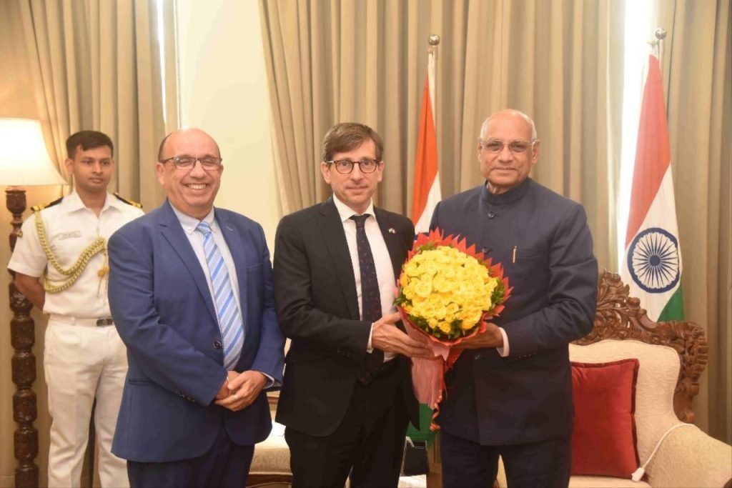 ज्यां मार्क सेर- शार्ले यांनी सोमवारी (दि. १६) राज्यपाल रमेश बैस यांची राजभवन, मुंबई येथे सदिच्छा भेट घेतली. त्यावेळी ते बोलत होते. यावेळी फ्रान्सचे मुंबईतील उपवाणिज्यदूत सॅमी बुआकाझे उपस्थित होते.