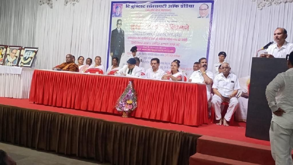 राष्ट्रीय उपाध्यक्ष एस के भंडारे यांनी भय्यासाहेब आंबेडकर यांनी बौद्ध झाल्याने कधीही राखीव जागेचा व दलित मित्र पुरस्काराचा फायदा घेतला नाही, देशात डॉ बाबासाहेब आंबेडकर यांच्या विचारांचेव समतेचे विरोधक संविधान बदलणार असल्याने संविधान वाचविण्यासाठी वेळ पडली तर भारतीय बौद्ध महासभेला रस्त्यावर येऊन संघर्ष करावा लागेल असे सांगितले तसेच महात्मा फुले , डॉ बाबासाहेब आंबेडकर आणि कर्मवीर भाऊराव पाटील या महापुरुषांचा अपमान केल्याबद्दल भाजपा मंत्री चंद्रकांत पाटील यांचा निषेध करून समता सैनिक दलाचा कार्यकर्ता मनोज गडबडे याच्यावर लावलेले ३०७,१२० कलम रद्द करावे अशी मागणी केली.