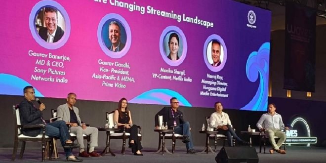 जिओ वर्ल्ड सेंटर येथील जागतिक दृकश्राव्य आणि मनोरंजन शिखर परिषद – २०२५ मध्ये ‘ओटीटी रिव्होल्युशन: हाऊ एआय, पर्सनलिझेशन अँड इंट्रॅक्टिवे कंटेंट अ चेंजिंग स्ट्रीमिंग लॅन्डस्केप’ या विषयावर पॅनल चर्चा आयोजित करण्यात आली होती. यावेळी लायनस्गेट प्ले एशियाचे अध्यक्ष रोहित जैन यांच्या सूत्रसंचालनाखाली झालेल्या या चर्चेत जिओ हॉटस्टारचे चीफ प्रोडक्ट ऑफिसर भरत राम, सोनी पिक्चर्स नेटवर्क्स इंडियाचे व्यवस्थापकीय संचालक आणि मुख्य कार्यकारी अधिकारी गौरव बॅनर्जी, नेटफ्लिएक्स इंडियाचे उपाध्यक्ष (कन्टेन्ट) मोनिका शेरगिल, एशिया पॅसिफिक आणि मिनी प्राइम व्हिडिओचे उपाध्यक्ष गौरव गांधी, हंगामा डिजिटल मीडिया एंटरटेनमेंट लिमिटचे व्यवस्थापकीय संचालक नीरज रॉय यांनी सहभाग घेतला.