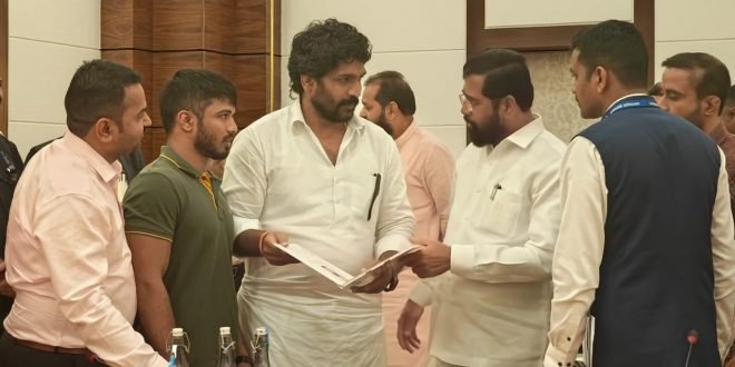 यावेळी सदर मागण्याचे निवेदन रुस्तुम ए हिंद आणि महाराष्ट्र केसरी पै. अमोल बुचडे आंतरराष्ट्रीय पदक विजेता पै.उत्कर्ष काळे यांनी या वेळी याबाबत निवेदन मुख्यमंत्री शिंदे यांना दिले.