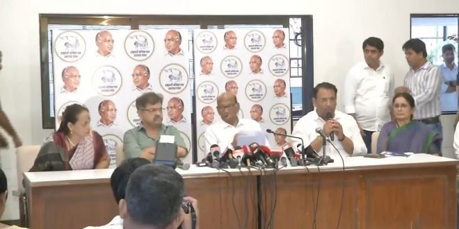 राज्यातील दुष्काळी परिस्थितीची आणि पाणी साठ्याची माहिती देण्यासाठी राष्ट्रवादी काँग्रेस शरदचंद्र पवार पक्षाच्यावतीने पत्रकार परिषदेचे आयोजन करण्यात आले. त्यावेळी शरद पवार यांच्यासह जितेंद्र आव्हाड, महेश तपासे आदी नेते उपस्थित होते.