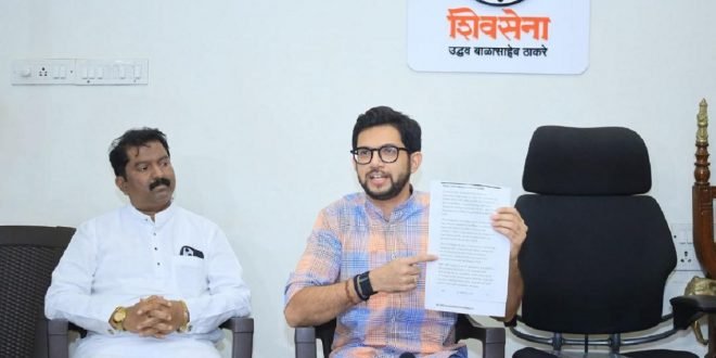 पुढे बोलताना आदित्य ठाकरे म्हणाले की, या विमानतळाला नाव दि बा पाटील यांचे दिले आहे तसे चोवीस तासात करा. नावाप्रमाणेच आमच्या मंत्रिमंडळाने आणि विधिमंडळाच्या दोन्ही सभागृहांनी मार्च २०२० मध्ये छत्रपती संभाजीनगर येथील विमानतळाचे नाव छत्रपती संभाजी महाराज विमानतळ असे केले होते. हे देखील केंद्र सरकारकडे ४ वर्षांपासून प्रलंबित आहे. ह्यावरून भाजपाचा महाराष्ट्र द्वेष दिसून येतोच आणि ते घटनाबाह्य मुख्यमंत्री शिंदे ह्यांना आपले राज्य कसे लुटायला देत आहेत, तेही दिसते. सर्वप्रथम, २०२२ मध्ये आमच्या मंत्रिमंडळाने मंजूर केल्याप्रमाणे केंद्र सरकारने अद्याप नवी मुंबई विमानतळाला अधिकृतपणे ” दि. बा. पाटील आंतरराष्ट्रीय विमानतळ” असे नाव का दिले नाही? ते त्यांच्या मित्रांसाठी कधीही मंत्रिमंडळाच्या बैठका घेतात, पण महाराष्ट्राच्या फायद्यासाठी कधीही घेत नाहीत. अशीही टीका यावेळी केली.