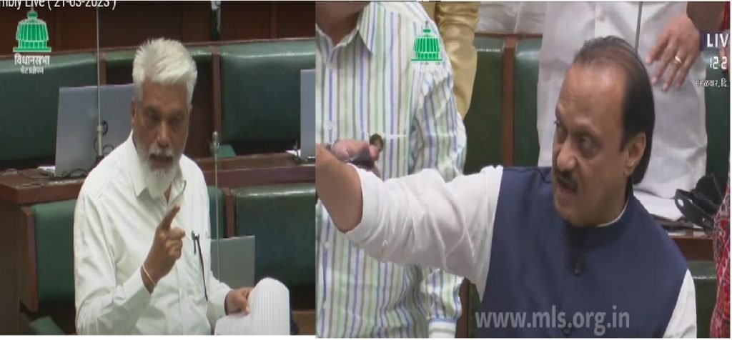 विधानसभेत प्रश्नोत्तराचा तास संपल्यानंतर मंत्री शासकिय कागदपत्रे सभागृहात सादर केल्यानंतर मंत्री दादाजी भुसे यांनी ठाकरे गटाचे खासदार संजय राऊत यांनी केलेल्या ट्विटचा उल्लेख करत ४८ अन्वये निवेदन करण्यास सुरवात केली. पण संजय राऊत यांच्या आरोपांना आव्हान देण्याच्या नादात मंत्री दादाजी भुसे यांनी राष्ट्रवादी काँग्रेसचे सर्वसर्वा शरद पवार यांचे नाव घेतल्याने अजित पवार आणि दादाजी भुसे यांच्यात चांगलीच खडाजंगी रंगली. अखेर अध्यक्ष राहुल नार्वेकर यांनी जे आक्षेपार्ह असेल ते कामकाजातून काढून टाकण्यात येईल असे आश्वासन दिले त्यानंतर हा वाद संपुष्टात आला.