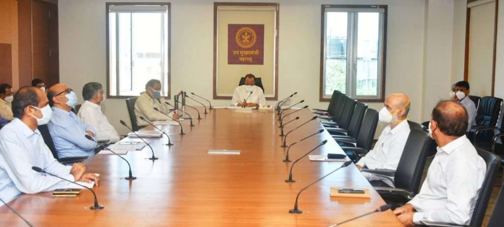 राज्यातील रुग्णालयांमध्ये आरोग्य सुविधा वाढवणे, ऑक्सिजन पुरवठा सुरळीत ठेवणे, डॉक्टर व आरोग्य कर्मचाऱ्यांच्या अडचणी दूर करणे आदी विषयांचा आढावा घेण्यासाठी उपमुख्यमंत्री अजित पवार यांच्या अध्यक्षतेखाली त्यांच्या मंत्रालयातील दालनात बैठकीचे आयोजन करण्यात आले होते. बैठकीला आरोग्यमंत्री राजेश टोपे, नगरविकासमंत्री एकनाथ शिंदे (व्हीसीद्वारे), वैद्यकीय शिक्षणमंत्री अमित देशमुख (व्हीसीद्वारे), अन्न व औषध प्रशासनमंत्री डॉ. राजेंद्र शिंगणे आदींसह संबंधित विभागांचे वरिष्ठ अधिकारी उपस्थित होते.