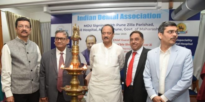 उपमुख्यमंत्री अजित पवार यांच्या उपस्थितीत इंडियन डेंटल असोसिएशन, पुणे जिल्हा परिषद आणि जिल्हा शासकीय रुग्णालय, औंध यांच्यात औंध येथे बहुउद्देशीय दंत रुग्णालय आणि संशोधन केंद्र स्थापनेबाबत सामंजस्य करार करण्यात आला.