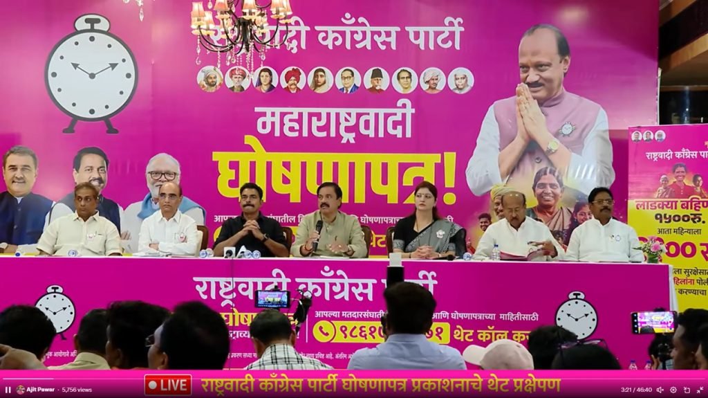 अजित पवार यांनी बारामती मतदारसंघातून बारामतीसाठी आणि पक्षाचा राज्याचा जाहीरनामा प्रसिद्ध केला. राष्ट्रवादी काँग्रेसने पहिल्यांदाच लढवत असलेल्या मतदारसंघनिहाय पक्षाचा जाहीरनामा प्रसिद्ध केला आहे. यावेळी राष्ट्रीय अध्यक्ष अजित पवार यांनी सरकार स्थापनेनंतर १०० दिवसात नवीन महाराष्ट्राचे व्हिजन जाहीर करु असे बारामतीतून माध्यमांशी बोलताना स्पष्ट केले.