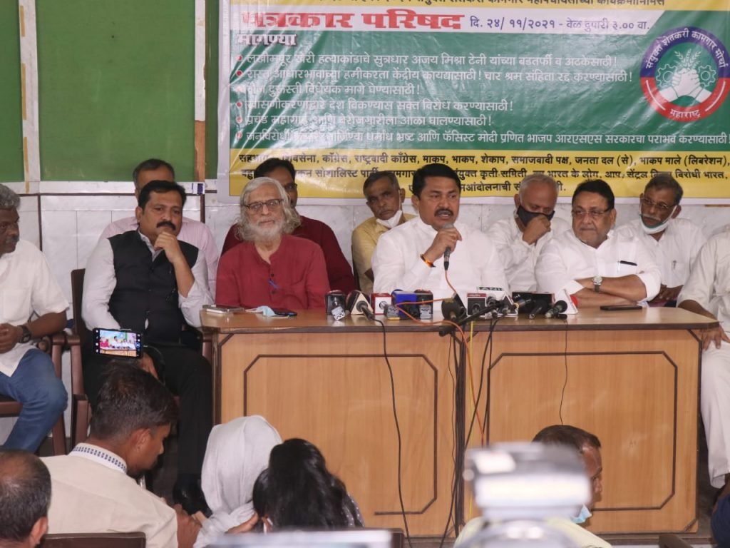 संयुक्त शेतकरी कामगार मोर्चा महाराष्ट्रने २७ व २८ नोव्हेंबर या कालावधीत शहीद किसान अस्थिकलश मानवंदना आणि संयुक्त शेतकरी कामगार महापंचायतीचे आयोजन केले आहे. यासंदर्भातील आयोजित पत्रकार परिषदेत पटोले बोलत होते.