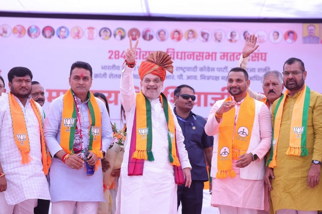 यावेळी बोलताना अमित शाह म्हणाले की, मोदीजींनी देशाला सुरक्षित केले आणि धर्म व संस्कृतीचा सन्मान केला. अयोध्येतील राम मंदिराला काँग्रेस ७५ वर्षे आडकाठी करत होते मात्र मोदी सरकारने राममंदिर निर्माण करून दाखवले. भाजपासाठी संविधान हा प्रचाराचा मुद्दा नाही, तर विश्वासाचा मुद्दा आहे. मात्र लोकसभा निवडणुकीमध्ये आणि आत्ता विधानसभा निवडणुकीत विरोधक संविधानाच्या मुद्द्यावर मते मागत आहेत ,जनतेची दिशाभूल करत आहेत. नागपूरमध्ये राहुल गांधी यांनी संविधानाची प्रत हातात घेऊन दाखवली त्यावरूनही राहुल यांचा समाचार घेतला. राहुल गांधी ज्या लाल पुस्तकाला संविधान म्हणून संबोधतात त्या लाल पुस्तकात फक्त कोरी पाने आहेत, ते संविधान नाही. हा डॉ. बाबासाहेब आंबेडकर यांच्या संविधानाचा अपमान आहे. मोदी सरकार आहे तोपर्यंत संविधानाला हात लावायची आणि आरक्षणाला धक्का लावायची कुणामध्ये हिंमत नाही. आरक्षण जैसे थे राहील अशी ग्वाही दिली .