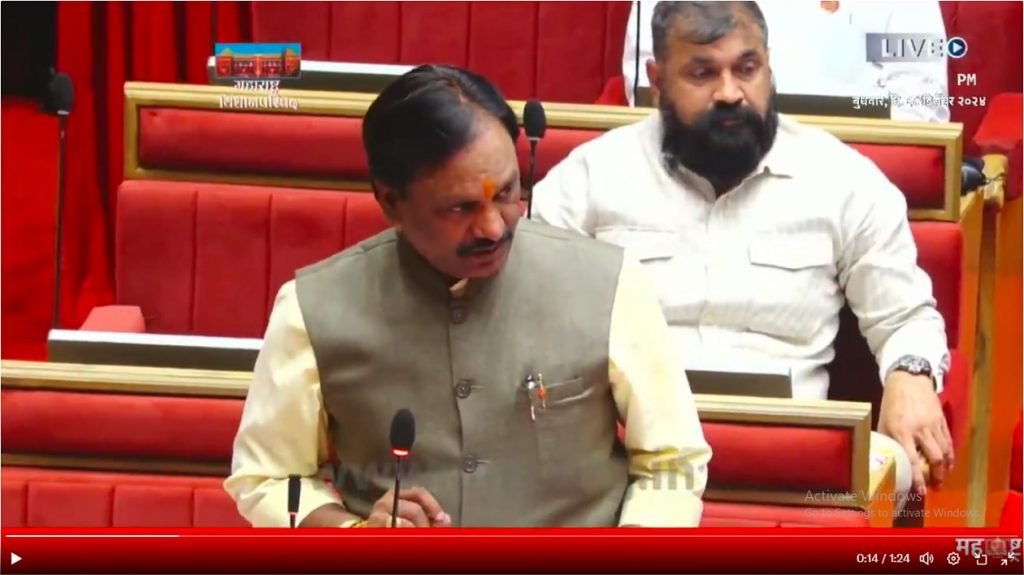 यासंदर्भात विधानसभेत काँग्रेसचे आमदार डॉ नितीन राऊत यांनी प्रश्न उपस्थित करत या निषेध व्यक्त केला. त्यावर भाजपाचे आमदार आशिष शेलार यांनी यावर पॉंईट ऑफ इन्फॉरमेशन द्वारे मुद्दा उपस्थित करत म्हणाले की, राज्यसभेच्या कामकाजात झालेल्या मुद्यावर इथे चर्चा करण्याचा मुद्दा उपस्थित करता येत नाही. तसेच तेथील मंत्र्याने कोणत्या संदर्भाने उपस्थित केला, तो संदर्भ न देता तो मुद्दा उपस्थित करणे योग्य नाही. डॉ बाबासाहेब आंबेडकर यांना काँग्रेसने साईडलाईन केल्याचा संदर्भही तेथील मंत्र्यांनी दिला. तो संदर्भ मात्र द्यायचा नाही. मात्र सोयीचे वक्तव्य करायचे असे चालणार नाही. त्यामुळे याप्रकरणी तपासून विधानसभेच्या सदस्यांनी केलेले वक्तव्य रेकॉर्डवरून काढून टाकण्यात यावे अशी मागणी केली.