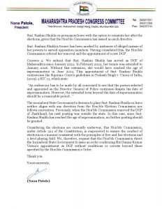 नाना पटोले यांचे निवडणूक आयोगाला पत्र