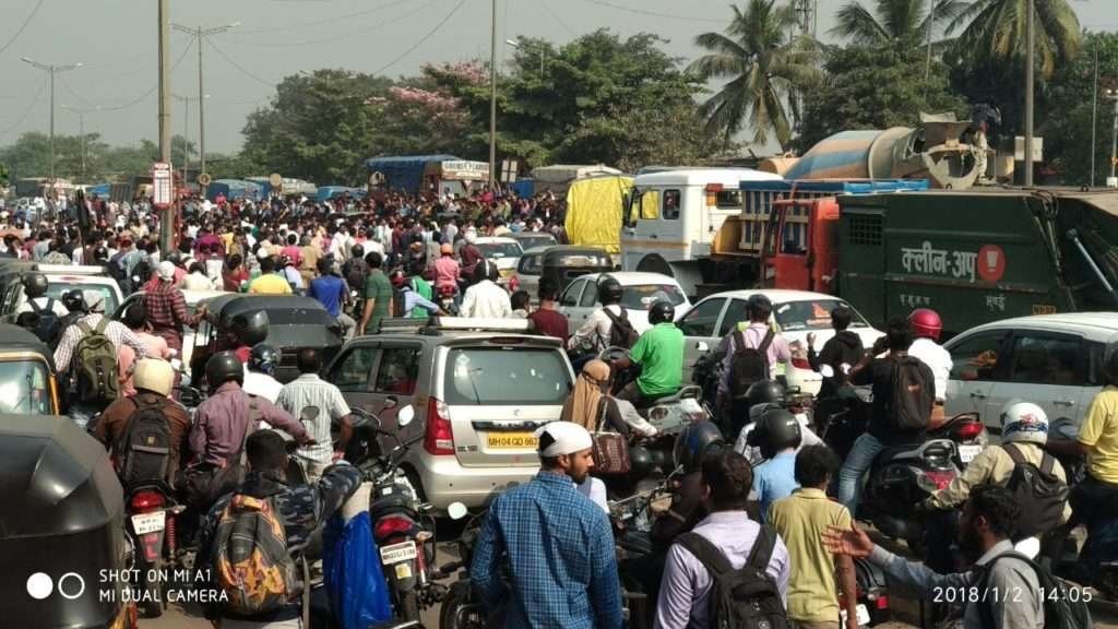 सकाळीच दलित समाजाचे कार्यकर्त्ये मोठ्या संख्यने रस्त्यांवर येत दुकाने बंद करण्याचे आवाहन करत होते. तसेच चौका चौकात रास्ता रोको आंदोलन करत होते. त्यामुळे सायन ते पनवेल असलेला संपूर्ण रस्त्यावरील वाहतूक पूर्णपणे ठप्प झाली आणि वाहनांच्या लांबचलांब रांगा लागल्या.
