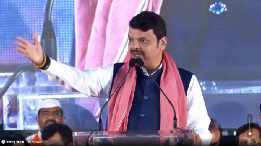 आज(रविवार) विरोधी पक्षनेते देवेंद्र फडणवीस यांची गोरेगावच्या नेस्को सेंटरमध्ये हिंदी भाषी महासंकल्प सभा झाली. या सभेची सुरूवात सामूहिक हनुमान चालीसा पठणाने झाली. फडणवीस मुख्यमंत्री उद्धव ठाकरे यांच्या टीकेला प्रत्युत्तर दिलं.