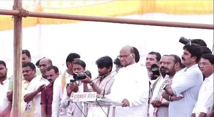 कर्जत जामखेड विधानसभा मतदारसंघातील उमेदवाराच्या प्रचारार्थ राष्ट्रवादीचे राष्ट्रीय अध्यक्ष शरद पवार यांची जाहीर सभा आज पार पडली. त्यावेळी ते बोलत होते.