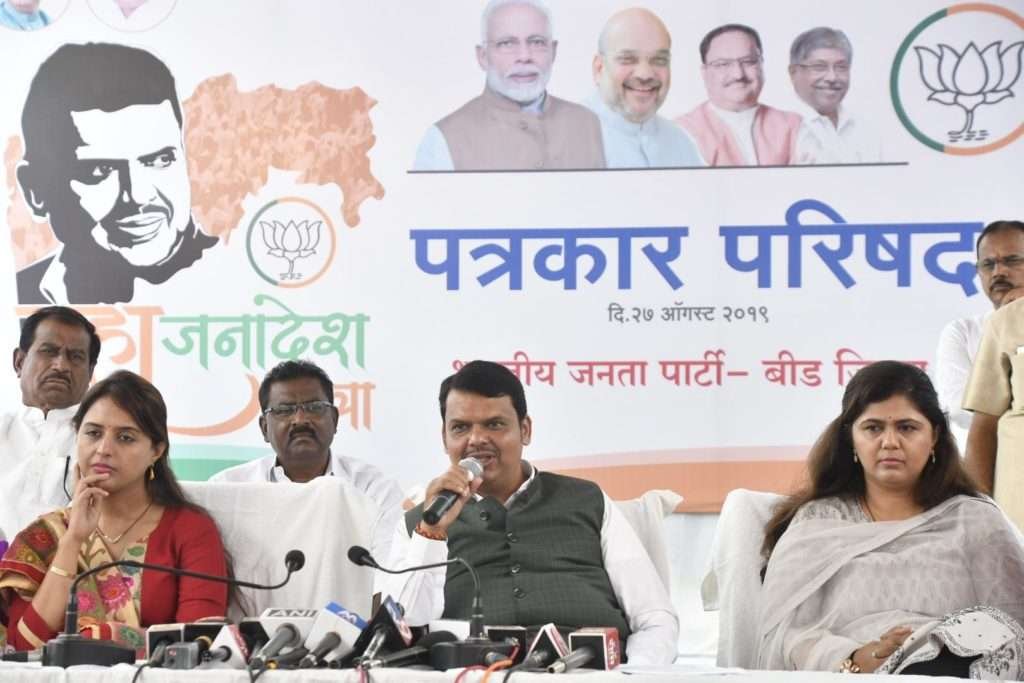 महाजनादेश यात्रेच्या दरम्यान बीड येथे आयोजित पत्रकार परिषदेत ते बोलत होते. यावेळी ग्रामविकासमंत्री पंकजा मुंडे, यात्राप्रमुख भाजपा प्रदेश सरचिटणीस आ. सुजितसिंह ठाकूर, खा. प्रीतम मुंडे, आ. सुरेश धस आणि भाजपा प्रदेश सहमुख्य प्रवक्ता केशव उपाध्ये उपस्थित होते.