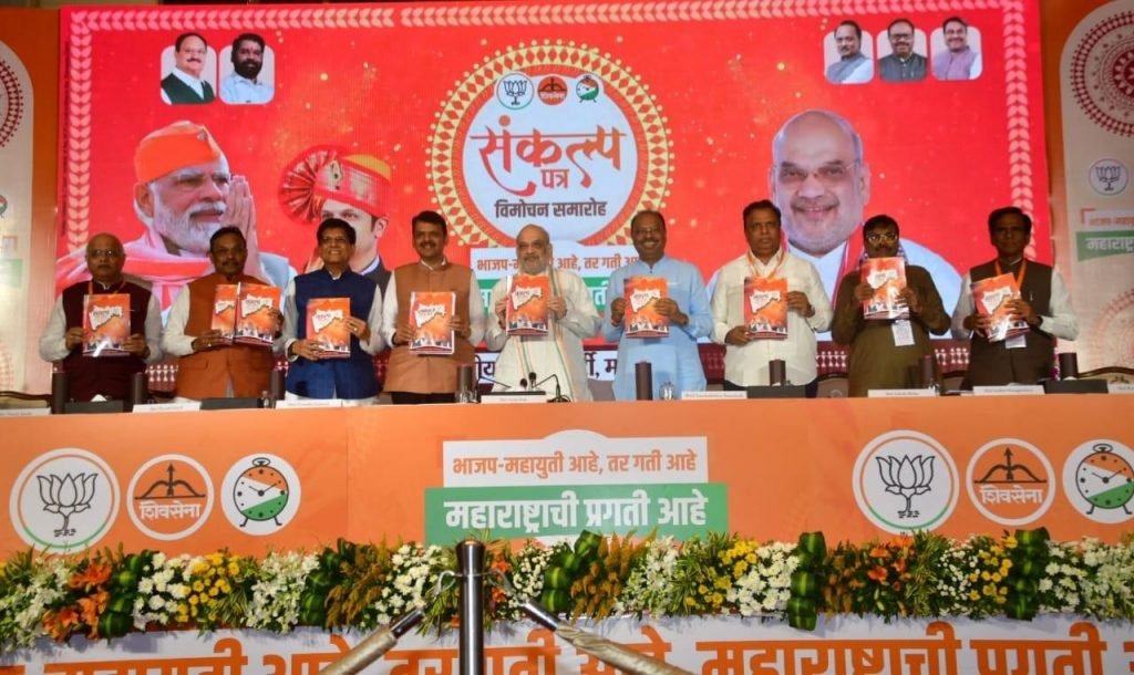 विधानसभा निवडणुकीसाठी भारतीय जनता पार्टीच्या संकल्पपत्राचे प्रकाशन केल्यानंतर झालेल्या पत्रकार परिषदेत अमित शाह बोलत होते.भारतीय जनता पार्टीचे प्रदेशाध्यक्ष चंद्रशेखर बावनकुळे, उपमुख्यमंत्री देवेंद्र फडणवीस, राष्ट्रीय सरचिटणीस विनोद तावडे, केंद्रीय वाणिज्य मंत्री पीयूष गोयल, जाहीरनामा समितीचे प्रमुख व वन – सांस्कृतिक मंत्री सुधीर मुनगंटीवार, निवडणूक व्यवस्थापन समितीचे अध्यक्ष व ज्येष्ठ नेते रावसाहेब पाटील दानवे, मुंबई भाजपा अध्यक्ष आ. आशीष शेलार, ज्येष्ठ नेते डॉ. विनय सहस्त्रबुद्धे आदी यावेळी उपस्थित होते.