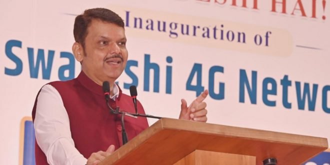 पंतप्रधान नरेंद्र मोदी यांच्या हस्ते आत्मनिर्भर भारत योजनेंतर्गत संपूर्ण स्वदेशी बनावटीच्या ‘४जी’ तंत्रज्ञानाधारित सेवेचे लोकार्पण झारसुगुडा ओडिशा येथून दूरदृष्य प्रणालीद्वारे झाले. याअंतर्गत बीएसएनएलच्या ९२ हजार ६३३ टॉवर्सचे लोकार्पण झाले असून, यापैकी ९ हजार ३० टॉवर्स महाराष्ट्रात उभारले गेले आहेत. या माध्यमातून देशातील तसेच राज्यातील लाखो लोकांपर्यंत ‘४जी’ तंत्रज्ञान पोहोचणार असून महाराष्ट्र शासनाच्या अकराशे ऑनलाईन सेवा गावागावात पोहोचण्यात या कनेक्टिव्हिटीचा फायदा होणार आहे, असे मुख्यमंत्री देवेंद्र फडणवीस यांनी सांगितले.