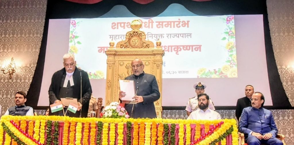 महाराष्ट्राचे नवनियुक्त राज्यपाल सी.पी.राधाकृष्णन यांनी राज्यपाल पदाची शपथ घेतली. राजभवन येथील दरबार हॉलमध्ये झालेल्या समारंभात मुंबई उच्च न्यायालयाचे मुख्य न्यायमूर्ती देवेंद्र कुमार उपाध्याय यांनी त्यांना शपथ दिली.
