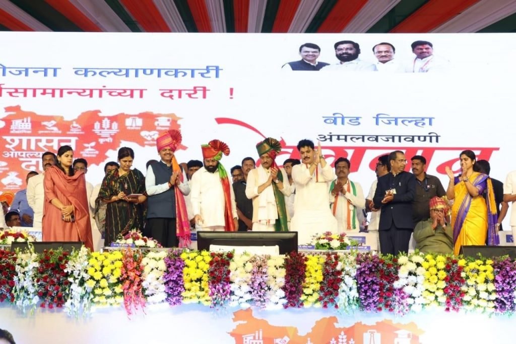 परळी येथील ओपळे मैदानावर ‘शासन आपल्या दारी’ अंतर्गत विविध योजनांचे लाभ वाटप व जिल्ह्यातील प्रस्तावित येाजनांचे भूमिपूजन आणि लोकार्पण झाले.