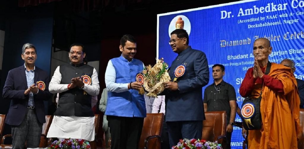दीक्षाभूमी स्मारक समिती संचालित डॉ. आंबेडकर महाविद्यालयाच्या हीरक महोत्सवी सोहळ्याचा प्रमुख अतिथी म्हणून मुख्यमंत्री देवेंद्र फडणवीस बोलत होते. सरन्यायाधीश न्यायमूर्ती भूषण गवई मुख्य अतिथी म्हणून उपस्थित होते. दीक्षाभूमी स्मारक समितीचे अध्यक्ष भदंत आर्य नागार्जुन सुरई ससाई अध्यक्षस्थानी होते. सामाजिक न्याय मंत्री संजय शिरसाट, मुंबई उच्च न्यायालयाचे वरिष्ठ न्यायमूर्ती चंद्रशेखर,दीक्षाभूमी स्मारक समितीचे सदस्य डॉ. कमलताई गवई , सुधीर फुलझेले,राजेंद्र गवई, प्रदीप आगलावे आदी यावेळी उपस्थित होते.