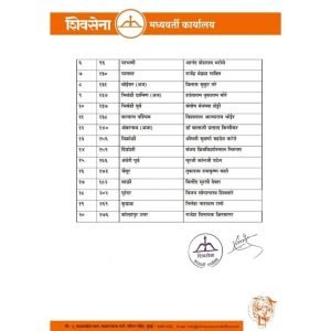 शिवसेना शिंदे गटाने जाहिर केलेली २० उमेदवारांची दुसरी यादी खालील प्रमाणे:=
