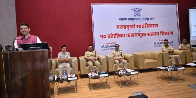 नागपूर पोलीस विभागाच्या वतीने पोलीस भवन येथे ‘गरुड दृष्टी’ सोशल मिडिया मॉनिटरिंग व सायबर इंटेलिजन्स प्रकल्पाबाबत सादरीकरण आणि विविध सायबर आर्थिक गुन्ह्यांच्या तपासातून प्राप्त झालेल्या तब्बल १० कोटी रुपये रकमेच्या वितरण समारंभात ते बोलत होते. त्यांच्या हस्ते या रकमा फसवणूक झालेल्या संबंधित व्यक्तींना वितरित करण्यात आल्या. यावेळी पोलीस आयुक्त रवींद्र कुमार सिंगल, सहपोलीस आयुक्त नवीनचंद्र रेड्डी, अतिरिक्त पोलीस आयुक्त सर्वश्री वसंत परदेशी, राजेंद्र दाभाडे, शिवाजी राठोड व वरिष्ठ पोलीस अधिकारी उपस्थित होते.