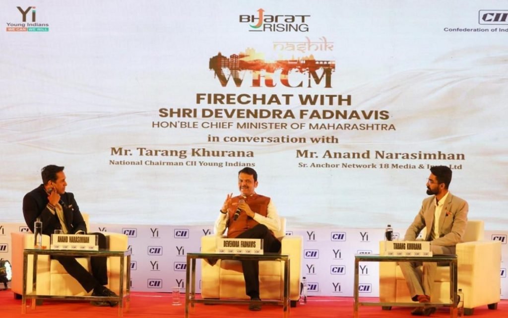 सीआयआय यंग इंडियन्सच्या नाशिक शाखेतर्फे पश्चिम क्षेत्र परिषदेच्या तीन दिवसीय बैठकीचा समारोप आज मुख्यमंत्री श्री. फडणवीस यांच्या संवादाने झाला. सीआयआयचे राष्ट्रीय अध्यक्ष तरंग खुराणा आणि न्यूज १८ चे अँकर आनंद नरसिंहन यांनी त्यांच्याशी संवाद साधला. यावेळी, आमदार सीमा हिरे, आमदार देवयानी फरांदे, विभागीय आयुक्त डॉ. प्रवीण गेडाम, विशेष पोलीस महानिरीक्षक दत्तात्रय कराळे, पोलीस आयुक्त संदीप कर्णिक, महानगरपालिका आयुक्त मनीषा खत्री, जिल्हा परिषदेच्या मुख्य कार्यकारी अधिकारी आशिमा मित्तल यांच्यासह दीपक बिल्डर्सचे दीपक चंदे, यंग इंडियन्सच्या पश्चिम क्षेत्राचे अध्यक्ष कृणाल शहा, वेदांत राठी, नाशिक शाखेचे संस्थापक अध्यक्ष जनक सारडा, नाशिक शाखेचे अध्यक्ष हर्ष देवधर, पारुल धाडीच, भाविक ठक्कर उपस्थित होते.