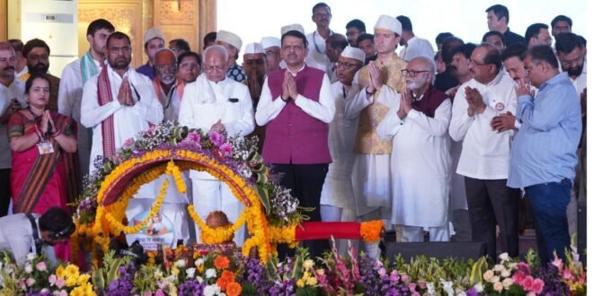 यावेळी गुरुमाऊली अण्णासाहेब मोरे यांच्या हस्ते कुशावर्तातील जलकलश मुख्यमंत्री फडणवीस यांना सुपूर्द करण्यात आला आणि राज्यातील ३० नदीखोऱ्यांतील पाणी कलशांच्या माध्यमातून आणून त्याचे मान्यवरांच्या हस्ते पूजन करण्यात आले. केदार कंठशिखर वयाच्या सहाव्या वर्षी सर करणाऱ्या चिमुकल्या मनकर्णिका देशपांडे हिचा सत्कार मुख्यमंत्र्यांच्या हस्ते करण्यात आला. ‘गोदा ते नर्मदा जलयात्रा २०२६’ या गीताचे विमोचन आणि उन्नत नाशिक अभियानाच्या बोधचिन्हाचे अनावरण मुख्यमंत्री फडणवीस यांच्या हस्ते करण्यात आले. कार्यक्रमापूर्वी विखे पाटील यांनी सपत्नीक १०८ कन्यकांचे पूजन केले.