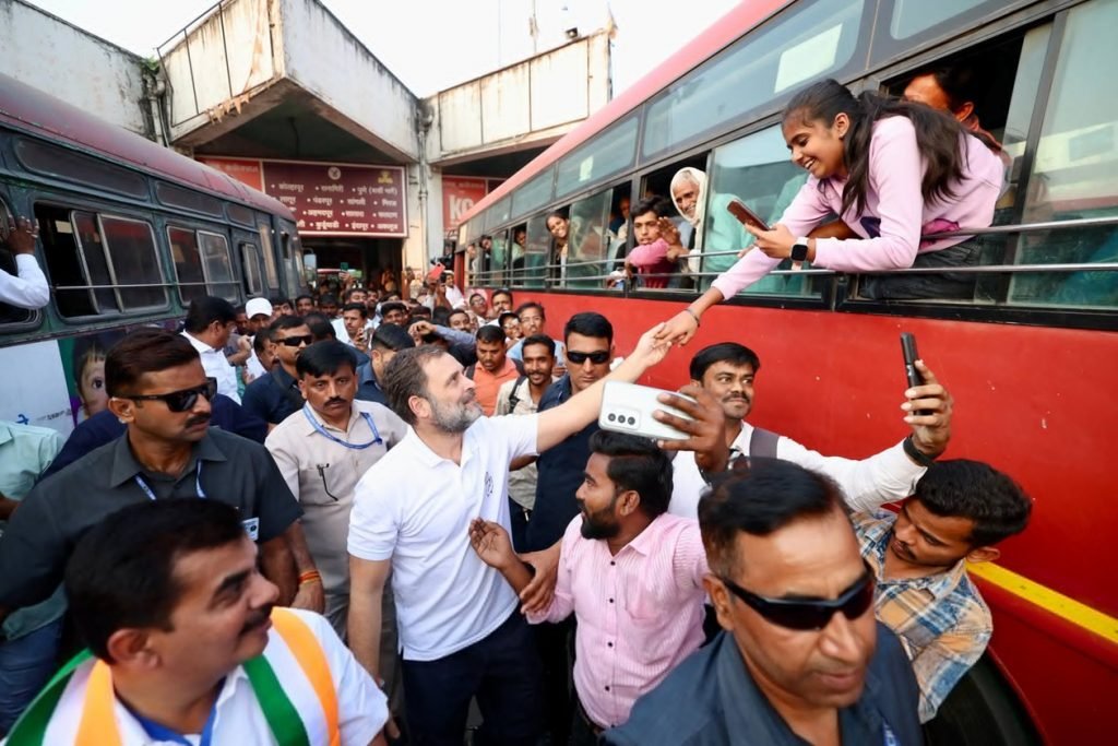 नेता विपक्ष श्री @RahulGandhi ने नांदेड़ के मुख्य बस अड्डे पर यात्रियों से मुलाकात कर उनकी समस्याएं सुनीं।