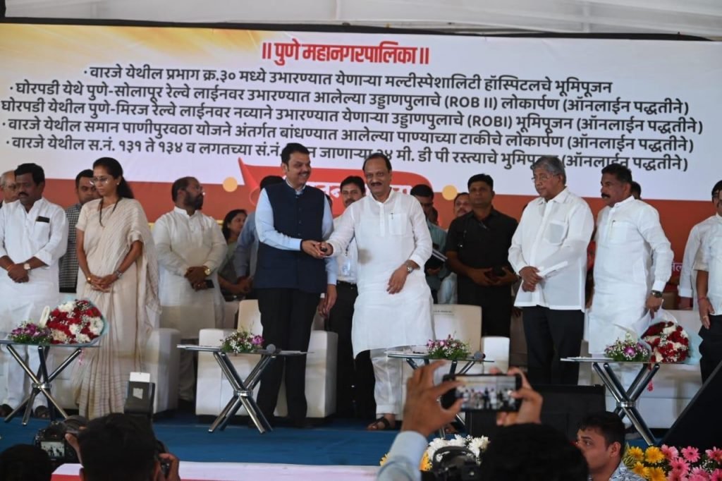 पुणे महानगरपालिकेतर्फे नेदरलँड आणि जर्मनीच्या सहकार्याने वारजे येथील प्रभाग क्र. ३० मध्ये उभारण्यात येणाऱ्या मल्टीस्पेशालिटी हॉस्पिटलसह अन्य विकासकामांचे भूमिपूजन व लोकार्पण उपमुख्यमंत्री देवेंद्र फडणवीस आणि उपमुख्यमंत्री अजित पवार यांच्या हस्ते व उपस्थितीत करण्यात आले.