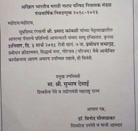 प्रसाद कांबळी यांच्या पँनलला मदत करण्यासाठी शिवसेना नेते तथा उद्योग मंत्री सुभाष देसाई आणि माजी आमदार विनोद घोसाळकर यांनी मुंबईत ठिकठिकाणी बैठका घेत प्रचार केला होता.