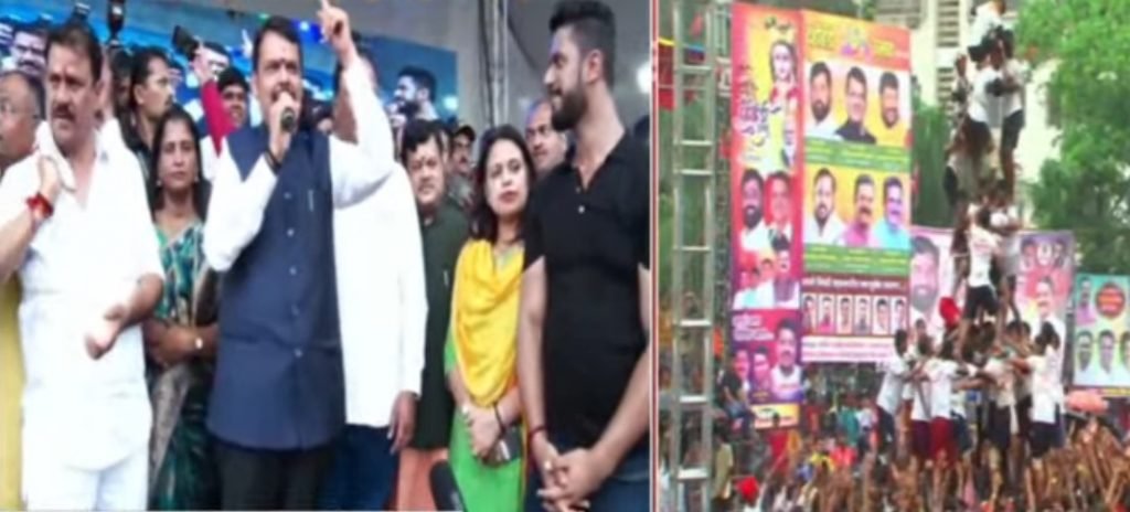 मागील दोन वर्षापासून कोरोनामुळे दही हंडी साजरा करण्यात आला नव्हता. मात्र यंदा राज्यात सत्तांतर होत मुंबईसह १४ महापालिका निवडणूका होणार आहेत. यापार्श्वभूमीवर मुंबईत भाजपा आणि शिंदे गटाच्या बंडखोर आमदारांनी दहीहंडीचे मोठ्या प्रमाणावर आयोजन करण्यात आले. या प्रत्येक दही हंडी उत्सवाला मुख्यमंत्री एकनाथ शिंदे आणि उपमुख्यमंत्री देवेंद्र फडणवीस यांनी दही हंडी उत्सवाला भेटी दिल्या. यावेळी बंडखोर गटाचे मागाठाणेचे आमदार प्रकाश सुर्वे यांनी आयोजित दही हंडी उत्सवाला उपमुख्यमंत्री देवेंद्र फडणवीस यांनी भेट देत गोविंदा पथकांचा उत्साह वाढविण्याचा प्रयत्न केला.