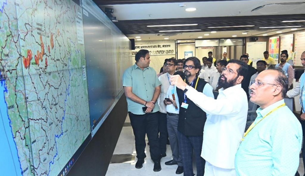 दुपारी बाराच्या सुमारास उपमुख्यमंत्री एकनाथ शिंदे यांनी या कक्षाला भेट दिली. यावेळी उपमुख्यमंत्र्यांचे प्रधान सचिव नविन सोना, कार्य केंद्राचे संचालक डॉ. भालचंद्र चव्हाण आदी उपस्थित होत. यावेळी डॉ. चव्हाण यांनी राज्यातील परिस्थीतीची माहिती दिली. यावेळी त्यांनी पुणे, छत्रपती संभाजीनगर आणि मुंबई महानगरपालिकेच्या अधिकाऱ्यांशी फोनवर बोलून त्यांच्याकडून पावसाची परिस्थिती जाणून घेतली. तसेच मुंबईत जिथे जिथे पाणी साचल्याच्या तक्रारी येत आहेत तिथे अतिरीक्त मनुष्यबळ तैनात करून लवकरात लवकर पाण्याचा निचरा होण्यासाठी पंप बसविण्याचे निर्देशही त्यांनी दिले.