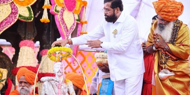सर्वप्रथम शिवराज्याभिषेक दिनाच्या शुभेच्छा देऊन उपमुख्यमंत्री एकनाथ शिंदे म्हणाले, ही पवित्र भूमी शिवरायांच्या पदस्पर्शाने पावन झालेली आहे. ३५२ वर्षांपूर्वी जर शिवराज्याभिषेक झाला नसता, तर आज आपण इथे नसतो. त्यांच्या दूरदृष्टी मुळे स्वराज्याचा पाया घालण्यात आला. छत्रपती शिवाजी महाराज यांनी जात-पात, धर्म, वर्ण या पलीकडे जाऊन रयतेचे राज्य प्रस्थापित केले. त्यामुळे ते फक्त महाराष्ट्राचेच नव्हे तर संपूर्ण देशाचे राष्ट्रनायक आहेत. पाकिस्तान बाबत जी भूमिका पंतप्रधान नरेंद्र मोदी यांनी घेतली आहे. त्यामागे देखील छत्रपती शिवाजी महाराज यांचीच प्रेरणा आहे, असेही सांगितले.
