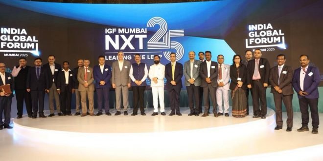 जियो वल्ड सेंटर येथे आयोजित इंडिया ग्लोबल फोरम २०२५ च्या कार्यक्रमात विविध सामंजस्य करार केल्यानंतर उपमुख्यमंत्री शिंदे बोलत होते.