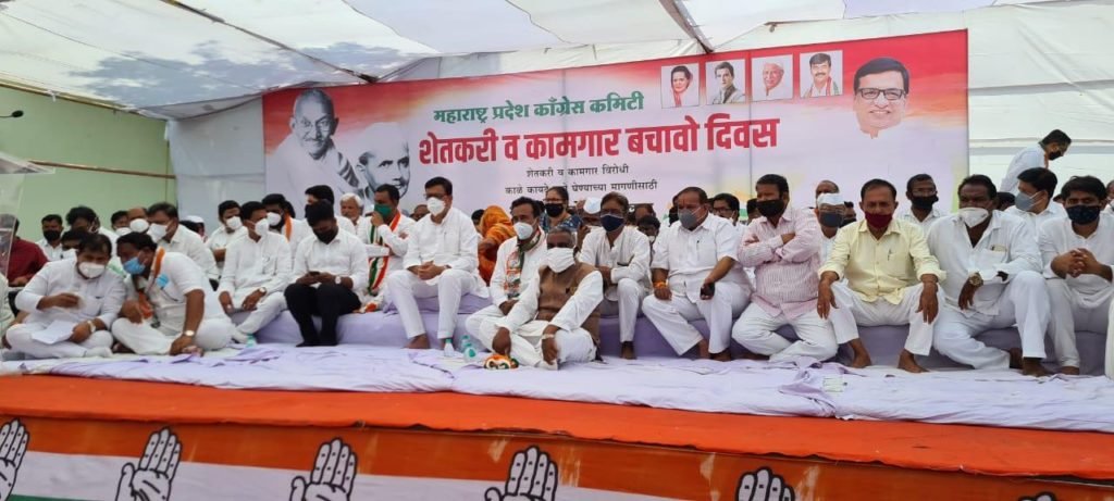 केंद्र सरकारने आणलेल्या कृषी कायदे रद्द करावेत या मागणीसाठी काँग्रेस पक्षाने राज्यव्यापी आंदोलनाची सुरुवात केली आहे. या आंदोलनाचा भाग म्हणून आज राज्यभरात किसान मजदूर बचाओ दिवस पाळण्यात आला. राज्याच्या सर्व जिल्हा व तालुका मुख्यालयी काँग्रेस पक्षाच्यावतीने आंदोलने करण्यात आली. काँग्रेस प्रदेशाध्यक्ष व महसूल मंत्री बाळासाहेब थोरात यांच्या नेतृत्वाखाली लासलगाव जि. नाशिक येथे धरणे आंदोलन करण्यात आले. यावेळी त्यांच्याबरोबर आ. हिरामण खोसकर, नाशिक जिल्हा काँग्रेस कमिटीचे अध्यक्ष डॉ. तुषार शेवाळे, नाशिक शहर काँग्रेसचे अध्यक्ष शरद आहेर, युवक काँग्रेसचे प्रदेशाध्यक्ष सत्यजीत तांबे, प्रदेश सरचिटणीस माजी खा. डॉ. उल्हास पाटील, माजी आ. अनिल अहेर, शिरीष कोतवाल, गुणवंत होळकर, जयश्रीताई पाटील राजाराम पानगव्हाणे प्रवक्त्या हेमलता पाटील यांच्यासह काँग्रेस पदाधिकारी कार्यकर्ते या धरणे आंदोलनात सहभागी झाले होते.