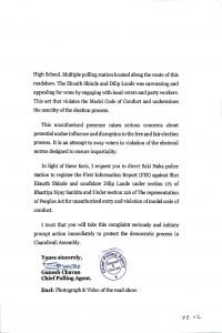 काँग्रेसने निवडणूक आयोगाला मुख्यमंत्री शिंदे यांच्या तक्रारीची दिलेले हेच ते पत्र